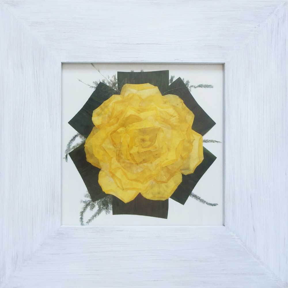 Respetamos los colores naturales que las flores adquieren al secar, iluminando las que lo necesiten. Paralelamente al proceso de secado elaboramos los marcos de forma artesanal, así como la decoración de los mismos.